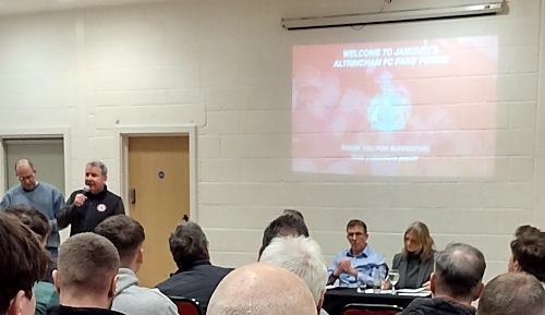 Getting on for eighty Altrincham supporters attended a Fans' Forum on the Community Sports Hall on Thursday evening. The event was jointly organised by the Football Club and the supporters' body Union Golf Road.The following does not claim to be an official record of the event but, rather, a summary of some of the topics discussed. The Alty Files apologises for any errors in what follows and will correct those if notified.
